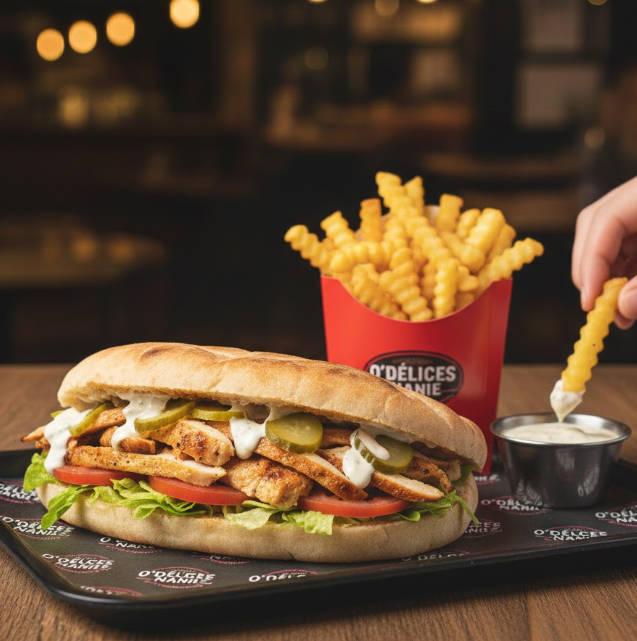 Poulet mariné ail citron et cornichons dans un pain libanais