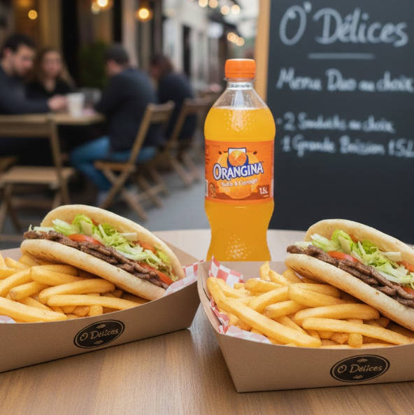 2 Sandwichs au choix + 2 frites + 1 grande boisson 1.5L